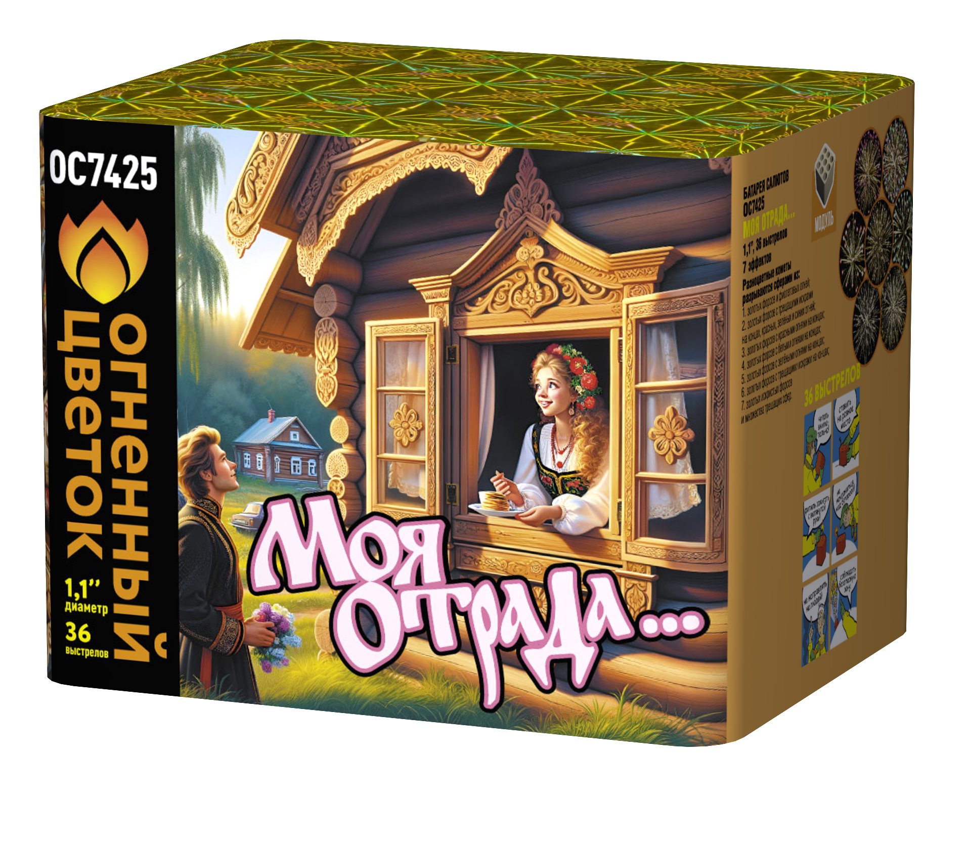 2.золотых форсов с трещащими искрами на концах, красных, зелёных и синих огней;